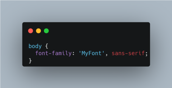那么瀏覽器會使用剛才下載的 MyFont 字體來渲染網頁中的文本。如果 MyFont 字體不可用(例如下載失敗),則瀏覽器會使用后備字體 sans-serif 來渲染文本。