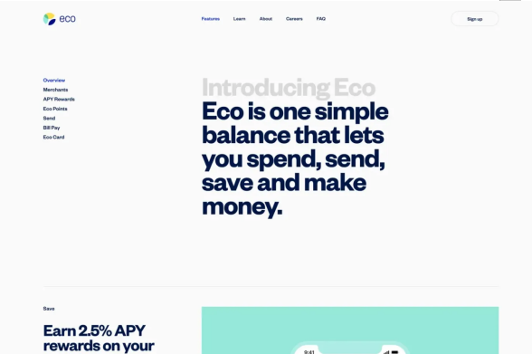生態應用程序使用極 簡主義美學與常見的設計模式相結合,散發出簡單,自信和安全。