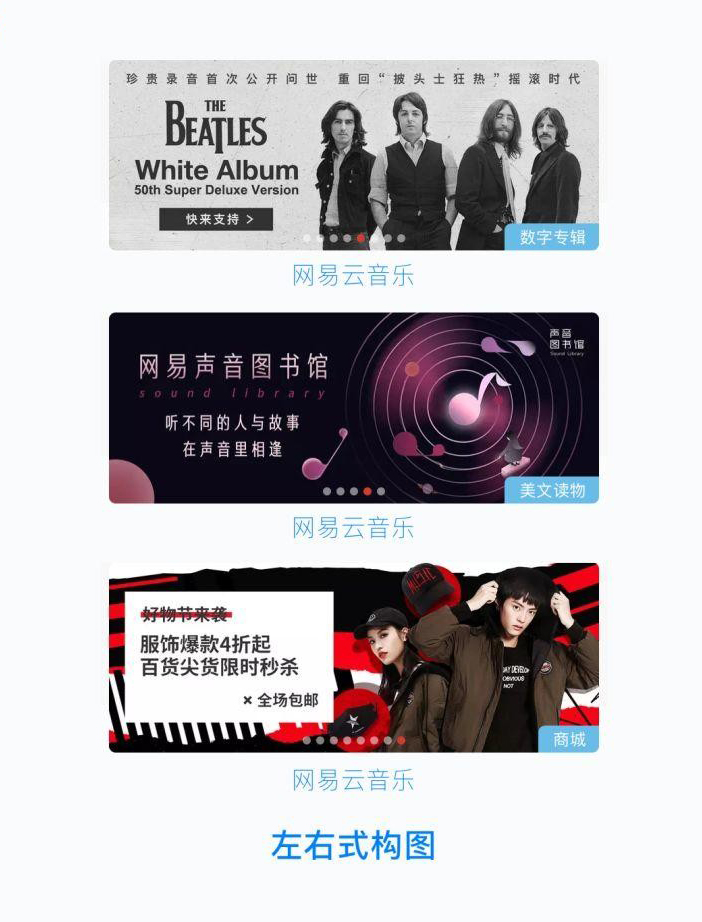 今天重點(diǎn)為大家總結(jié)了兩點(diǎn),一是 banner 的拆分剖析,以便我們對設(shè)計知識體系的建立和訓(xùn)練,二是設(shè)計工作中常用版式的分析和實(shí)例,希望能對大家平日的設(shè)計工作與學(xué)習(xí)有幫助。