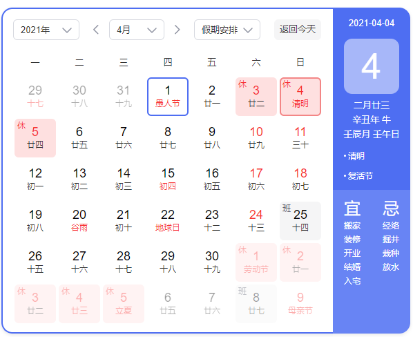 清明節(jié)是中華民族古老的節(jié)日,既是一個(gè)掃墓祭祖的肅穆節(jié)日,也是人們親近自然、踏青游玩、享受春天樂(lè)趣的歡樂(lè)節(jié)日。又到春風(fēng)送暖、草長(zhǎng)鶯飛的時(shí)節(jié)。春天的綠意如約而至,一年一度的清明節(jié)也即將到來(lái)。根據(jù)《國(guó)務(wù)院辦公廳關(guān)于2021年部分節(jié)假日安排的通知》,廣州騰虎網(wǎng)絡(luò)2021年清明節(jié)放假安排如下 :