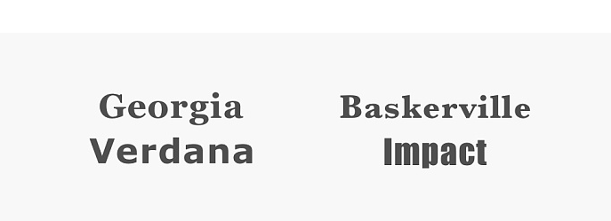 通常情況下,將字體家族的數量限制在更小數量(2個是很多,1個通常就夠了),整個網站堅持使用相同的原則。如果使用多個字體,請確保倆個字體是否和諧。以下面的字體組合為例,Georgia和Verdana的搭配相得益彰,相對比較和諧。相比于右邊Baskerville和Impact則會有明顯的沖突感,非襯線Impact明顯的超過了Baskerville的視覺沖擊力。