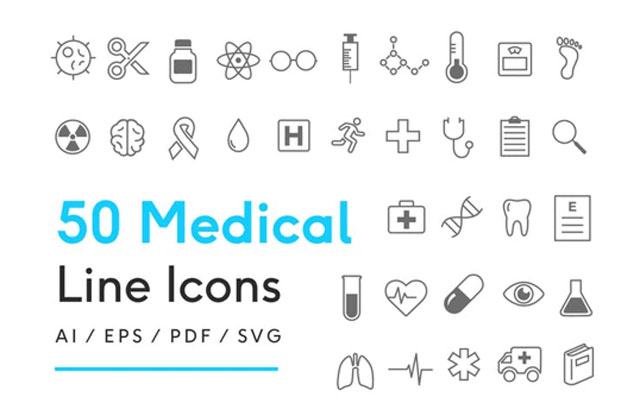 醫(yī)學領(lǐng)域就是一個很好的例子。圖中醫(yī)學行業(yè)線性圖標包括50個完全可編輯的圖標,它們的格式多種多樣。每一張圖片都以簡單明了的方式展示了一個特定行業(yè)的概念。還可以看一看更多特定行業(yè)的圖標系列: