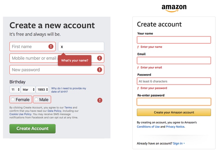 △ Facebook和Amazon采用了兩種不同的驗證反饋方式