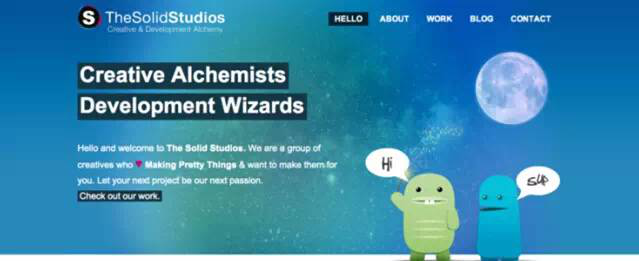 如圖三:又是一個漸變中加入了光點的背景設計,與個案例不同的是,JJ Ying使用了彩色的光點,營造出了一種燈光閃爍的城市夜晚景象,配合漸變模糊背景,讓整個網站變得更浪漫愜意。
